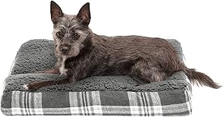 Furhaven Pillow Pet Bed for Dogs and Cats - Classic Cushion Sherpa and Plaid Flannel Dog Bed Mat with Removable Washable Cover Smoke Grey, Small