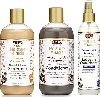 African Pride Moisture Miracle Shampoo, Leave-in Conditioner und Leave-in Creme SET, Kokosöl, Honig, Baobab Öl Hydrat Coconout Öl und Milch