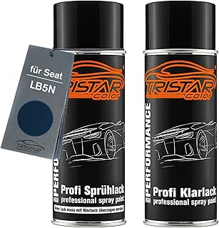TRISTARcolor Autolack Spraydosen Set für Seat LS5V Azul Lluvia Perl Metallic Basislack Klarlack Sprühdose 400ml