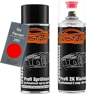 TRISTARcolor Autolack 2K Spraydosen Set für Ferrari 350 Rosso Dino Basislack 2 Komponenten Klarlack Sprühdose