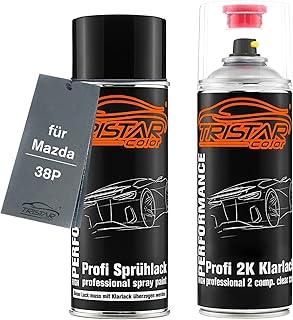 TRISTARcolor Autolack 2K Spraydosen Set für Mazda 38P Plutosilber Metallic Basislack 2 Komponenten Klarlack Sprühdose