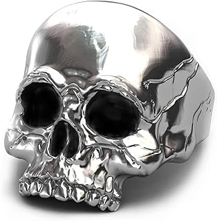 Siegelring Skull Ringe für Herren Big Statement Gothic Skull Face Herren Ringe mit Schwarz Fein Geschenk-Box