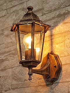Rustikale Hoflampe antik Gold IP43 Aluminium Glas Wandleuchte Außenlampe Laterne Haus Balkon
