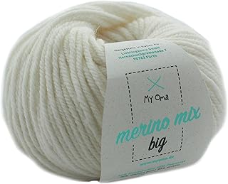 MyOma Strickgarn Merino - Merinogarn naturweiß (Fb 3800) - 1 Knäuel Merino Wolle weiß zum Stricken - Dicke Wolle + GRATIS Label - 50g/75m - Nadelstärke 6-7mm - weiche Wolle – Merino Garn