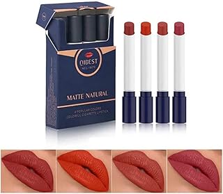 Greyghost Matte Lippenstift Set 4 Farben Zigarettenrohr Lippenstift Wasserdicht Langlebig Lippenstift Feuchtigkeitsspendend Nude Lippenstift Make-up Samt Lipgloss (A)