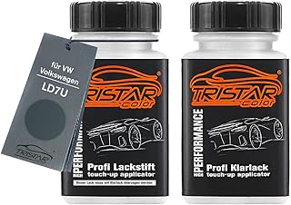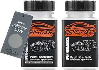 TRISTARcolor Autolack Lackstift Set für VW/Volkswagen LD7U Offroad Grey Metallic Basislack Klarlack je 50ml