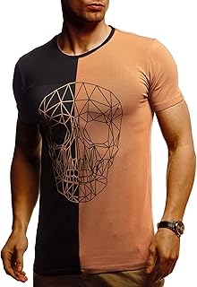 Herren Sommer T-Shirt Rundhals-Ausschnitt Slim Fit Baumwolle-Anteil Basic Männer Totenkopf T-Shirt Crew Neck Hoodie-Sweatshirt Kurzarm lang LN4795