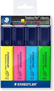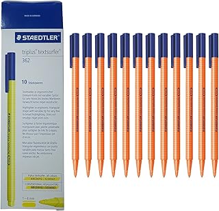 Staedtler Highlighter (362 SB4) Visit the STAEDTLER Store 815 ratings -26% $890 List Price: $12.00 Get Fast, Free Shipping with Amazon Prime FREE Returns Available at a lower price from other sellers that may not offer free Prime shipping. About this item Staedtler-triples text surfer highlighters: assorted Manufactured in Germany 362 SB4 Colours: Line widths: Made in Germany Made in Germany Ergonomic triangular shape For relaxed and easy writing and drawing INKJET SAFE Does not smudge inkjet printouts For paper, fax and carbon copies Locked tip Even when subjected to extremely heavy writing pressure, the tip remains locked in place and cannot be pushed back into the barrel.