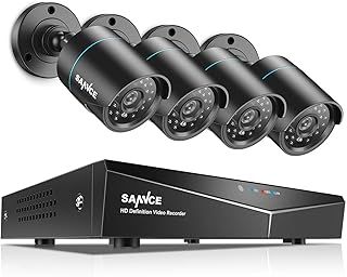 SANNCE Überwachungskamera Set System Videoüberwachung CCTV 8-Kanal 720P TVI DVR Rekorder Überwachungskamera Outdoor Bulletkameras mit 4 x 720P innen/Außen IR Nachtsicht Bewegungsmelder