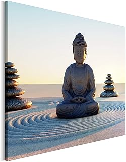Revolio 70x50 cm Leinwandbild Wandbilder Wohnzimmer Modern Kunstdruck Design Wanddekoration Deko Bild auf Leinwand Bilder 1 Teilig - Buddha Steine Sand schwarz braun
