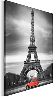 Revolio 50x70 cm Leinwandbild Wandbilder Wohnzimmer Modern Kunstdruck Design Wanddekoration Deko Bild auf Leinwand Bilder 1 Teilig - Eiffelturm Auto grau rot
