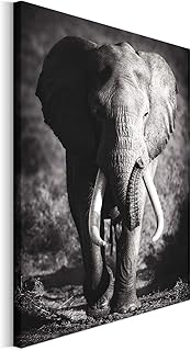 Revolio 50x70 cm Leinwandbild Wandbilder Wohnzimmer Modern Kunstdruck Design Wanddekoration Deko Bild auf Leinwand Bilder 1 Teilig - Elefant Tier schwarz-weiß grau