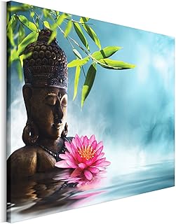 Revolio 70x50 cm Leinwandbild Wandbilder Wohnzimmer Modern Kunstdruck Design Wanddekoration Deko Bild auf Leinwand Bilder 1 Teilig - Buddha Zen Lotus pink blau