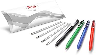 Pentel IZee Kugelschreiber, einziehbar, mit Metallclip Pochette de 4 Schwarz/Blau/Rot/Grün