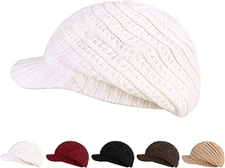 Gestrickte Schirmmütze Schirmmütze Winter Damen mit Visor Winter gestrickte Warme Damen Barett Mütze aus Weicher Baumwolle