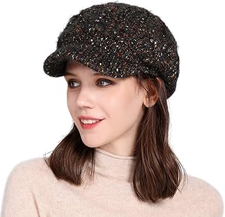 Fancet Warme Damen Barett Mütze Dicke Strickmütze mit Visor Winter gestrickte Schirmmütze Baskenmütze