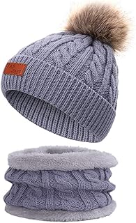 Kinder Winter Beanie Hut Schal Set Winter Mütze Loop Schal Set Kinder Unisex Strick Bommelmütze Wolle Schal für Mädchen Damen