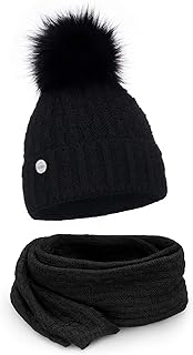 Mütze und Schal Damen Winter warme Strickmütze Wintermütze Damen mit Bommel Winterset Strick Beanie Damen für Winter Mütze Schal Set Damen