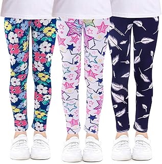 Mädchen Leggings Hosen Kinder Stretch Leggings Blumenmuster 3er-Pack Alter 4-13 Jahre