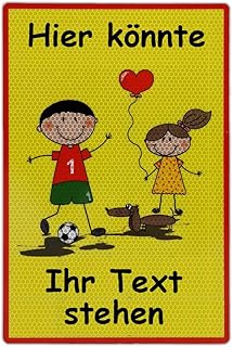 UvV Warnschild Hinweisschild mit Ihrem Wunschtext 30 x 20cm reflektierend Achtung Langsam spielende Kinder Vorsicht erhältlich (gelb)