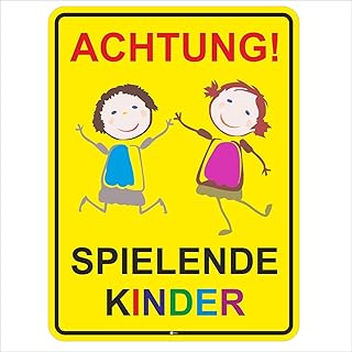 Hinweis-Schild Achtung spielende Kinder I Größe 30 x 40 cm I Straßen-Warnschild Spielstraße Spielplatz I Vorsicht Kids langsam fahren I hin_404